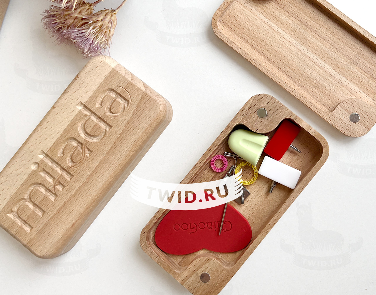 Внутри шкатулки установлен магнит, для надёжного удержания иголочек.