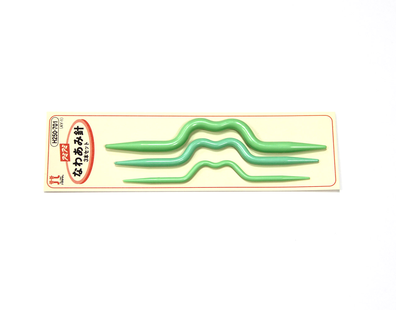 Вспомогательные спицы от Hamanaka удобны для вывязывания кос, а также для выведения петель из работы. В наборе 3 спицы разного размера по длине (11, 11,5, 12 см), и по диаметру, для удобства работы с пряжей разного метража.